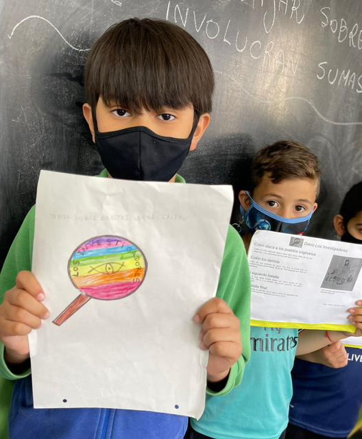 Estas actividades se enmarcan en un proyecto de largo aliento: para poder trabajar como periodistas (y contar hechos de 1492 como si los estuviesen viviendo o narrar un conflicto actual) compartimos clases, videos y noticias en el aula; además, relacionamos momentos importantes de nuestra historia con la llegada de Colón. ¿Por qué había surgido, después, la necesidad de independizarse, que se hizo efectiva en 1816? ¿Cómo prosiguió este conflicto a lo largo de los siglos?