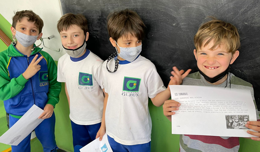 Y así, a lo largo del 2021, los chicos investigaron, escribieron, pensaron cómo sería formar parte de estos pueblos (en el pasado lejano y en el presente), realizaron y buscaron imágenes para nutrir lo que sus textos querían expresar, le dieron vida a un proyecto, crearon nombres para sus diarios y hasta se animaron a diseñar sus propios logos. Finalmente, el 12 de octubre, cada uno de los grupos tomó el centro de la escena y expuso su trabajo. Con muchas ganas y entusiasmo contaron cuál era su proyecto, por qué lo habían imaginado de esa forma y cómo lo habían logrado.