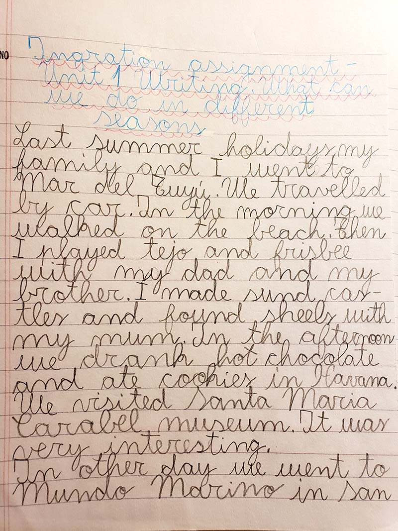 Por este motivo, las clases se desarrollan por niveles y no por grado. Dividimos a todos los grados en cuatro grupos de trabajo para que cada uno de los chicos se sienta cómodo y pueda incorporar y afianzar los conocimientos de forma natural. Utilizamos el enfoque comunicativo de enseñanza (communicative approach) aplicando el idioma a situaciones cotidianas. De esta manera, propiciamos la comunicación entre los estudiantes y motivamos el aprendizaje. Cada clase aborda las cuatro habilidades (oralidad, escritura, comprensión lectora y comprensión auditiva) de forma dinámica y divertida. Por ejemplo, trabajamos las efemérides desde el ámbito artístico, ya sea mediante la confección de un collage, la realización de un dibujo o de una cartelera, entre otras formas de expresión.