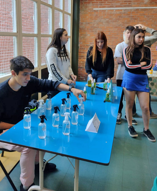 Luego de esta verificación de parámetros, comenzaron con las pruebas experimentales en el laboratorio de la escuela, siempre acompañados por los docentes, para verificar la practicidad, cuidado ambiental y aplicación asertiva de cada producto para que, luego, pudieran realizarlos en casa teniendo los materiales, insumos (ingredientes) y el sistema de empaque. Más adelante, y teniendo el prototipo para elaborar en casa, realizaron un cronograma de acciones en el que se determinaron plazos y responsables para realizar el plan de negocios. Como parte del trabajo, realizaron encuestas, flyers y spots publicitarios, presupuestos y un proyecto de uso de redes sociales para la comercialización.