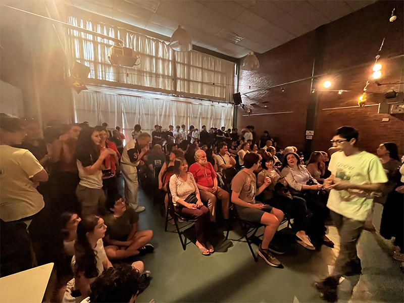 Durante la primera parte del año, en el taller de Teatro trabajamos a partir de improvisaciones en las que las y los estudiantes abordaron personajes e historias que los llevaron a transitar por corporalidades lejanas a su cotidiano. Ya en la segunda mitad, abordamos la obra La asamblea de las mujeres y el trabajo consistió en que cada estudiante compusiera personajes del sexo opuesto. Para esto, partimos del texto original de la obra. Identificando la situación de cada escena, las y los chicos improvisaron a partir de ellas.
